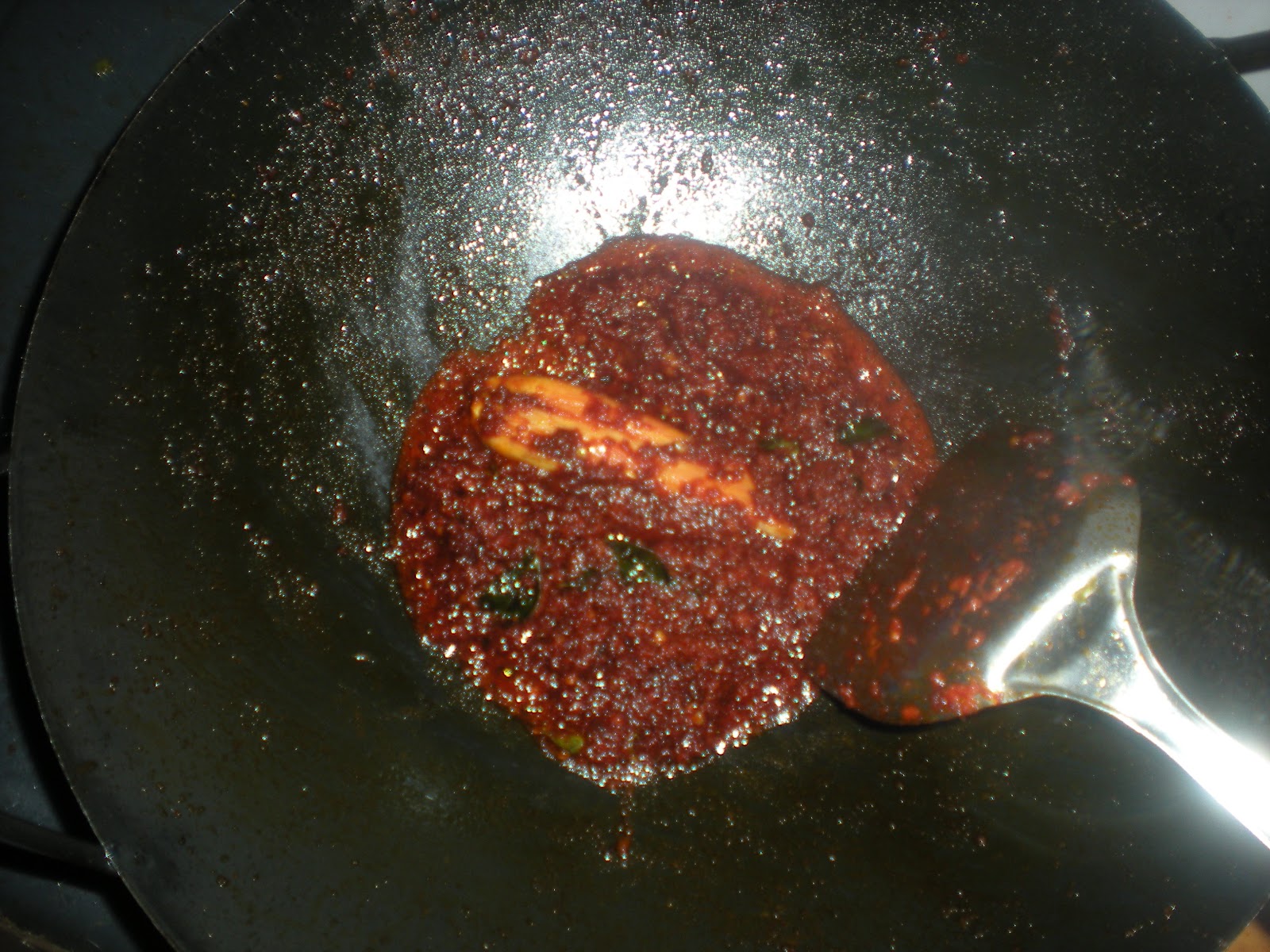 Tumis bahan kisar tadi sampai garing.Campak dari jauh daun kari ngan serai tadi.Da garing tu masukkan air asam jawa, garam, perasa aku guna gula sesudu je.Biarkan mendidih baru masukkan ikan tu sebab takut hancurkan.Masukkan gak bendi skali.Biarkan mendidih sampai ikan masak.Bole la dihidangkan...